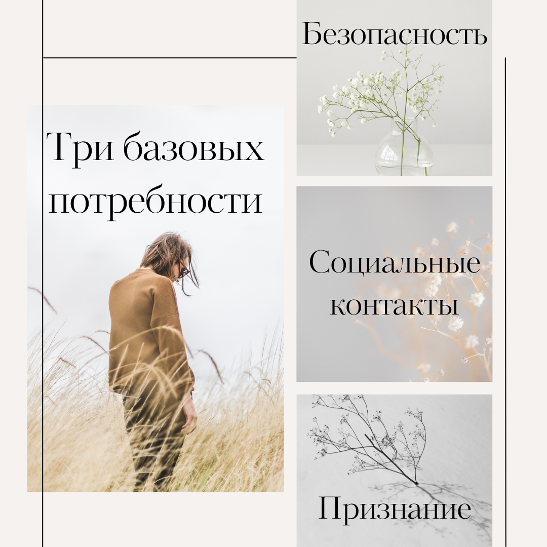 Что вообще такое потребность? Это человеческие желания, которые требуют удовлетворения. Согласно теории Маслоу, базовые потребности заложены на самой первой ступени пирамиды, без их удовлетворения, дальнейшее движение по пирамиде, будет проблематичным. Что же это за потребности? БЕЗОПАСНОСТЬ Нам нужно иметь безопасное и надежное место, где можно расслабиться, быть умеренным в своих силах, и возможности справиться. Иметь уверенные материальные возможности. Чувствовать стабильность. Чувство безопасности, формируется в возрасте до 3-х лет, когда ребенок принимает среду где он растет и она не кажется ему надежной. Если до этого возраста, была нарушена связь (ребенка оставляли одного, не было личного места в доме), как следствие формируется чувство страха действовать, страх новизны. СОЦИАЛЬНЫЕ КОНТАКТЫ Во все года и временя, человеку необходим другой человек, ведь наше истинное развитие, происходит через контакты с другими людьми. Взаимодействие с другими людьми дает нам понимания, а кто Я,
