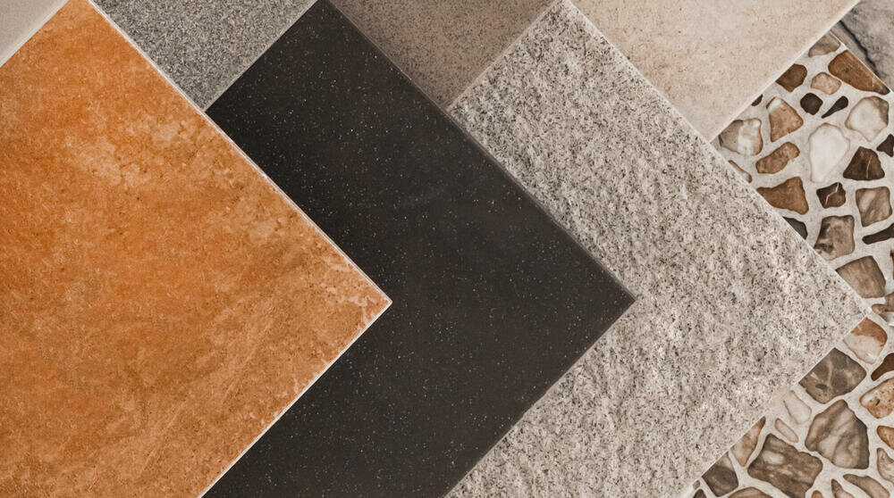 Керамогранит и плитку монтируют на ровное основание: допустимое отклонение — не более 3 мм на 2 погонных метра. Материалы можно положить на деревянный пол, выровняв его листами ГВЛ, либо сделать стяжку или наливной пол. Монтаж довольно простой: нужны плиточный клей, строительный уровень и маячки, чтобы контролировать ровность укладки. Иногда керамогранит нужно подрезать, это делают плиткорезом или болгаркой с алмазным диском.