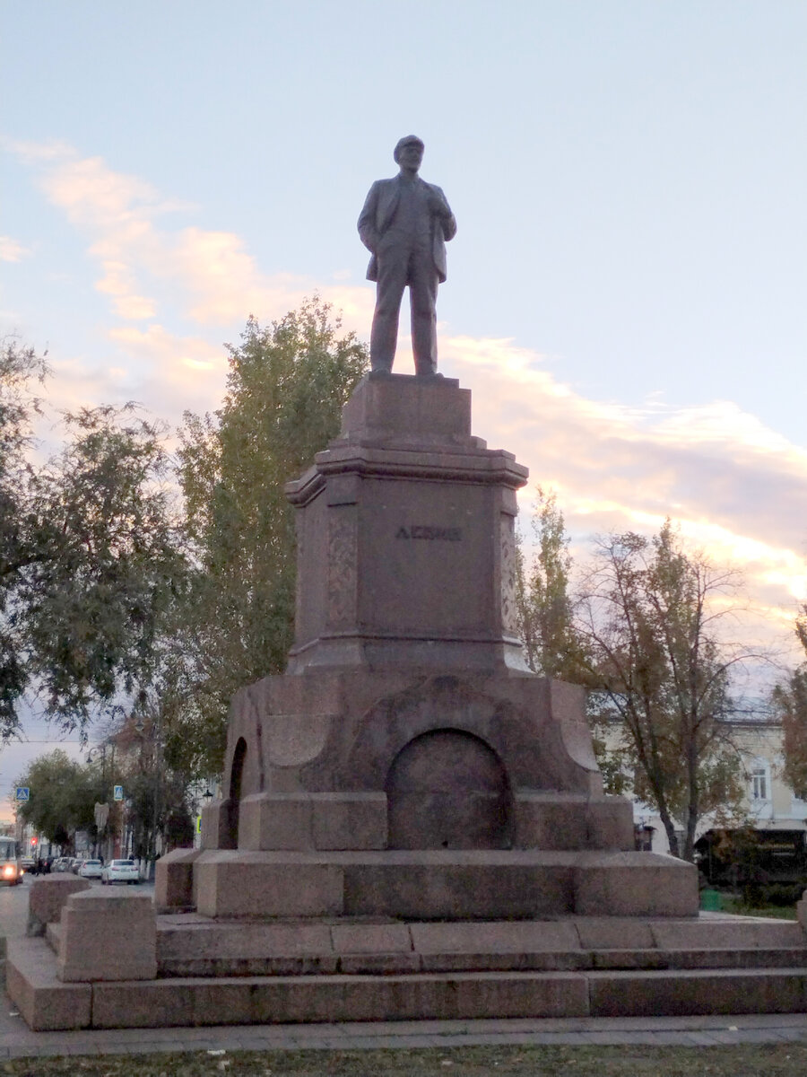 Владимир Ильич встал здесь в 1927-м. Ну правильно, сколько можно такой глыбе финского гранита пропадать?! Бесхозяйственно это! Правда, opиентацию Ленину поменяли: он теперь смотрит не на Волгу, которая у меня за спиной, а вдоль улицы Куйбышева.