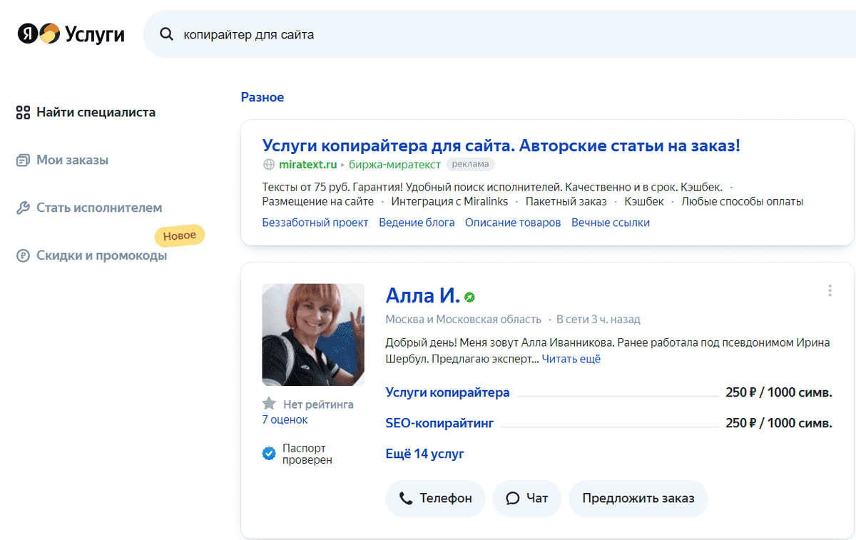 Получить деньги за исполнение заказов в интернете реально, что доказывается переходом на сайт Яндекс.Услуг. На площадке размещаются заказы, например, для копирайтеров. Копирайтеры пишут тексты по техническим заданиям для сайтов, пабликов, маркетплейсов и других ресурсов.
