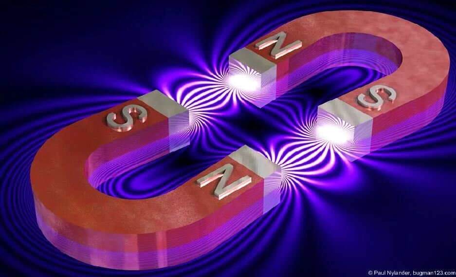 Предыдущая статья: 3.Что представляет собой магнитное поле постоянного магнита? Предположим, что рядом с магнитом находится другой магнит. См. рис. М 7. Вокруг каждого магнита во внешнем пространстве распространяются магнитные силовые линии. То есть, у каждого магнита с одной внешней стороны в магнитных линиях уровни энергетического поля сжаты, а с другой внешней стороны расширены, разжаты. Как бы ни располагались магниты один относительно другого, в пространстве между ними нарушается равновесие сил. В окружающем магниты пространстве, сжатые уровни энергетического поля около одного магнита, стремясь расшириться, развернутся в сторону разжатых уровней другого магнита. То есть, северный полюс одного магнита развернется к южному полюсу другого магнита. Таким образом, для восстановления нарушенного равновесия, в силовом поле пространства, окружающего магниты, формируются силы, которые поворачивают и прижимают магниты друг к другу так, что внешняя сторона, вызывающая сжатие уровней энерге