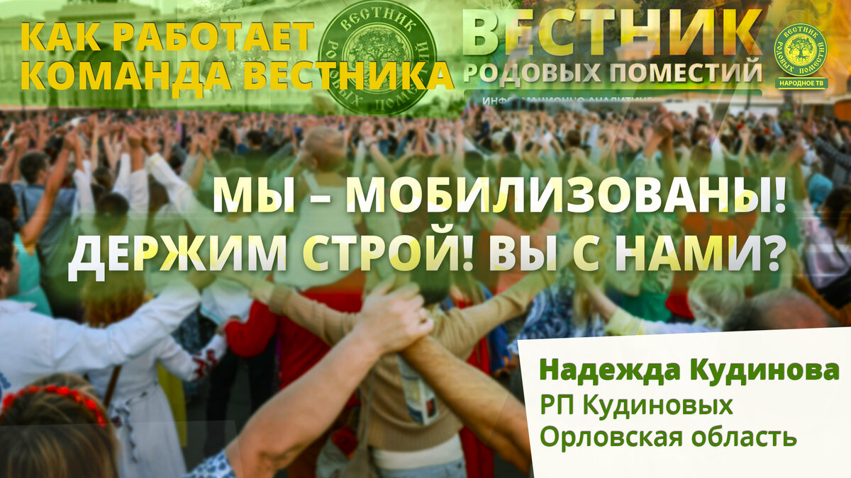 Но, несмотря ни на что, коллектив постоянно растёт. И сейчас уже инициатива идёт от самих людей. Они пишут мне с просьбой быть сопричастными к нашему коллективному творению. Люди как будто чувствуют истину душой и тянутся к этому процессу. Я скажу вам по секрету: я иногда плачу от радости за наш коллектив. Ну просто не могу сдержать внутри распирающую меня гордость за русских людей! За умение быть сплоченными в трудную минуту! За неистребимый патриотизм и чувство локтя друга!