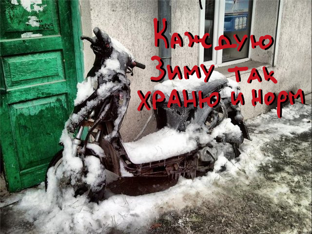 Эта статья для тех, кто хочет самостоятельно подготовить свой байк на срок хранения до 6 месяцев. Этого времени хватит для того, чтобы перенести зиму в средней полосе России. Место для хранения Идеальным местом считается отапливаемое помещение, без высокой влажности и перепадов температур. Последние играют ключевую роль. Если температура стабильно низкая, большого вреда это не принесет. Моем и чистим При помощи мыла, губки и ведра смойте всю грязь с мотоцикла и оставьте сушиться на солнце. Уделите этому этапу особое внимание. Любые загрязнения будет сложно удалить после продолжительной зимы. Бензин, масло и смазка Бензин. После того как мотоцикл высох после помывки, можно заливать бензин. Заполняем полный бак бензином, которым вы обычно пользуетесь. Делаем это для того, чтобы бак не заржавел внутри. Стабилизатор в бензин добавлять не обязательно, если срок хранения меньше 6 месяцев. Лучше обратить внимание на качество бензина. Масло. Менять ли масло перед зимовкой,это личный вы