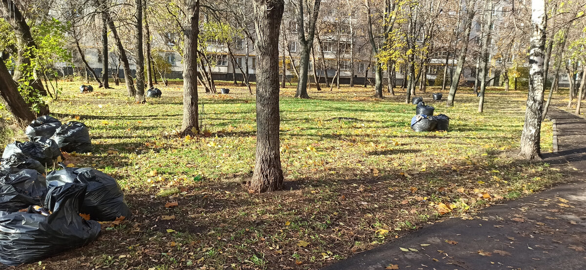 Весь мир борется за экологию, а в Москве экологичные листья 🌿🍁 прячут в пластиковые мешки.