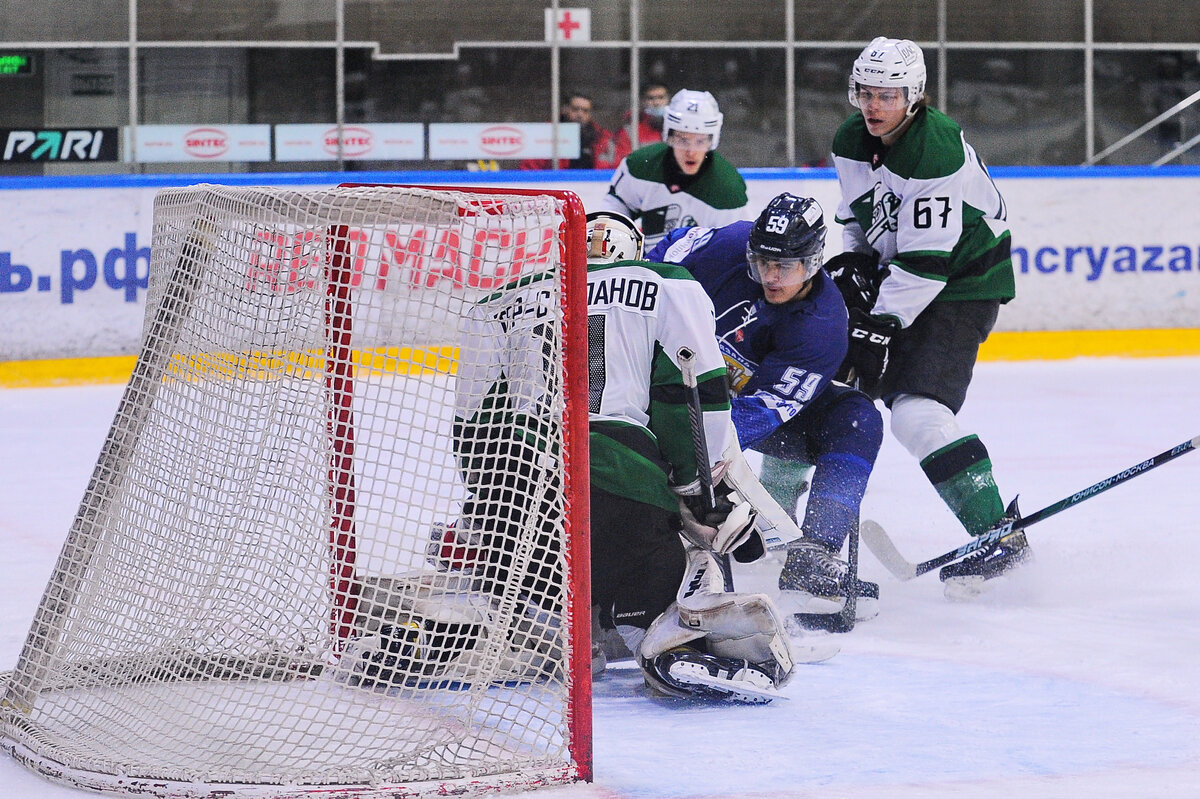 ХК «Юнисон-Москва» отправился на выезд, чтобы завершить октябрьскую серию матчей играми против местного ХК «Рязань-ВДВ». Тренерский штаб грифонов продолжает эксперименты с составом, три первых тройки нападения остались прежними, изменения коснулись защитников и четвёртого звена: на этот раз в 4 линии атаки появились Антон Казначеевский, Илья Матвеев и Владимир Утешев, сменив Вячеслава Саркисянца, Никиту Чеблокова и Степана Перегудова, также вне заявки оказался Дмитрий Челпанов, вместо которого место в составе получил новичок Артём Швайковский. На последнем рубеже тоже не осталось без изменений – в состав после микротравмы вернулся Владислав Тер-Степанов, который и занял место в воротах в сегодняшней встрече. Первый период соперники провели осторожно и скромно, что подтверждает статистика по броскам в створ ворот (8:5). Но грифонам пяти бросков оказалось достаточно, чтобы открыть счет и не уйти на перерыв с пустыми руками: за две с небольшим минуты до перерыва Артём Швайковский и Егор Л