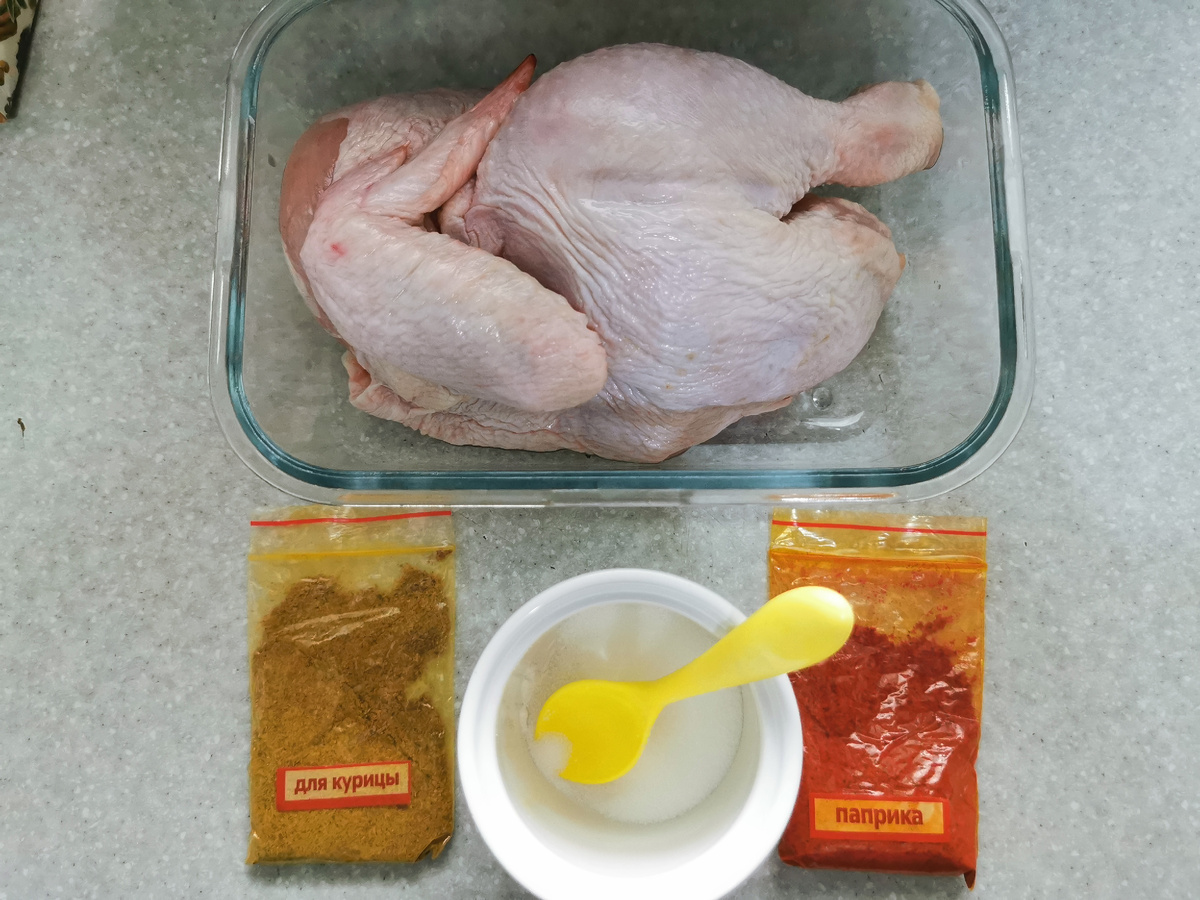 Когда совершенно нет времени готовить, но ожидаются гости или просто хочется вкусно поужинать мне на выручку всегда приходит этот рецепт, так как не отнимает времени - кура готовится практически сама, а я могу заниматься чем-то другим или просто отдохнуть. Половину курицы натереть специями и солью, добавив ложку сметаны или майонеза по желанию. Я использую паприку и приправу для курицы, обе из набора Абхазских специй. Далее нарезать лук толстыми кольцами, так как тонкие быстро сгорят и дадут горечь вместо сока. Секретом данного рецепта является следующее: на дно ёмкости наливаем вино, у меня в наличии есть белое, но подойдёт и красное. Плотно закрываем фольгой. Ставим в духовку, разогретую до 200 градусов на час. По прошествии часа снять фольгу, если хочется, чтобы образовалась корочка. Если же не нужно, то и фольгу не трогаем. Оставляем на тех же 200 градусах ещё примерно на 40 минут или до полной готовности. И вот, безупречно вкусная и сочная курочка уже готова радовать вас за уж