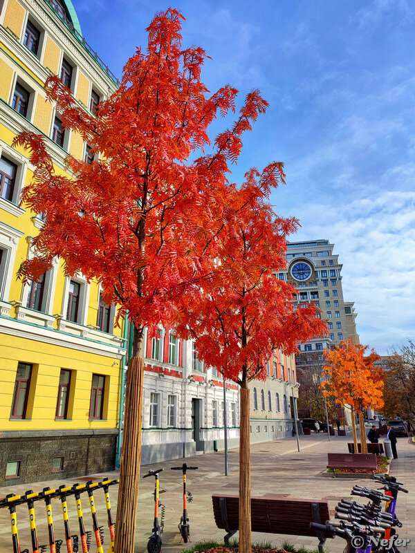 Успела погулять, застала кусочек золотой осени. Если вы давно не были в Музеоне и в Парке Горького, посмотрите. Белки на месте. Только не пойму, прошлогодние или это подросшие бельчата. Берут орехи и бегут закапывать. Делают запасы на зиму. Правда говорят, что они не помнят, где закопали, это инстинкт. В скверах работники коммунальных служб сгребают листья и увозят их на помойку, в парках к счастью нет. Можно походить, пошуршать, помедитировать. Частенько натыкаюсь на этот объект. Композиция называется "Реквием", автор Фахраддин Рзаев. По соседству есть еще несколько его скульптур, я загадывала про них загадку пару лет назад - вот. Разные деревья осенеют по разному. Вот клен, дальше каштан, потом ясень что ли, затем березки. В солнечную погоду выглядит отлично. Из Музеона в Парк Горького можно попасть не переходя дорогу. Есть проход под мостом, там пешеходная зона и вообще с 2015 года это считается единым пространством. Хотя на мой взгляд парки имеют совершенно разную атмосферу. Фиолет