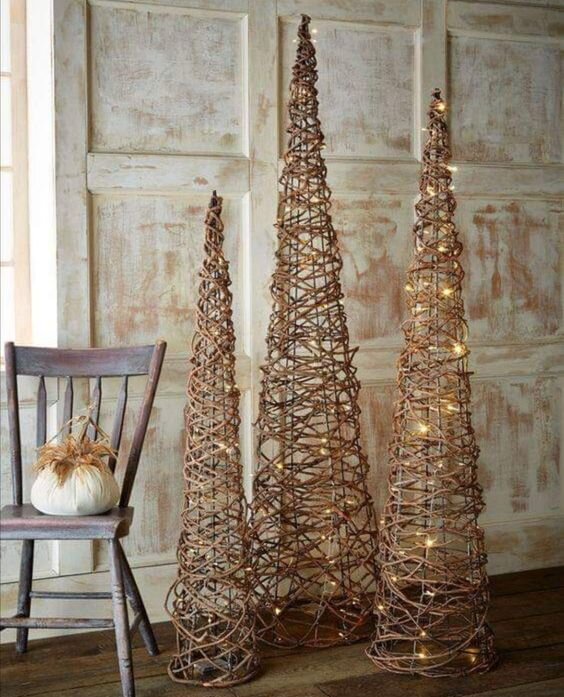 Если у вас море свободного времени и гора веток, можно сделать вот такую красоту! Не представляю, как это сделано, но выглядит очень классно! Как вам такой вариант? Мне кажется, выглядит стильно, но важно, чтобы сверху падал свет, иначе эффекта не будет. Божественной красоты елки, выполненные в технике макраме. А это чудо - новогодняя ель из пампасной травы. Пылесборник,