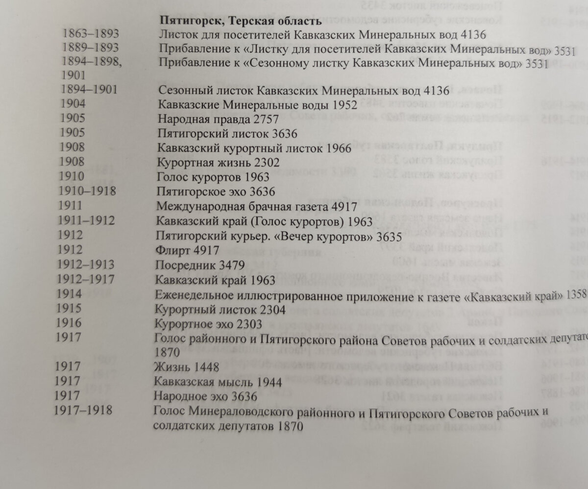 Очень приятная администратор выдает мне каталог и я снимаю страницу с Пятигорскими газетами.