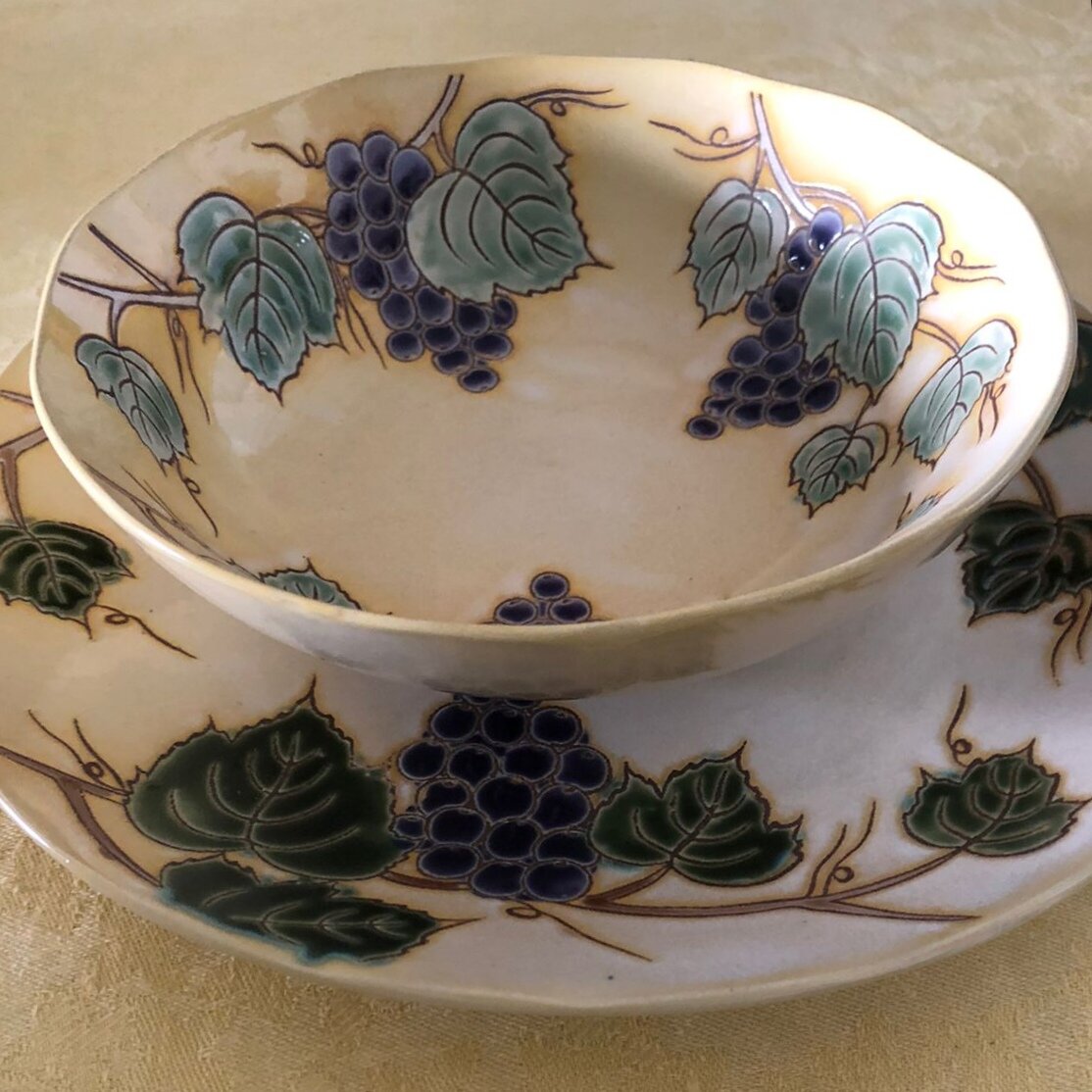 Всем здравствуйте! Я не знаю, как продавались дефициты в разных регионах нашей страны, но у нас в городе дефицитные товары продавались вместе с чем-то, не очень ценным. Насчет фарфора я не могу сказать, было такое или нет, но точно знаю, что шоколад продавался вместе с килькой. Но я не об этом. Не только в нашей стране такое было. Правда это не было связано с распределением дефицитных товаров, скорее всего это было, как некая акция, как теперь у нас- то скидки, то купи 2 и получишь подарок, ну и так далее. Я когда-то отдыхала за рубежом, и там, в супермаркете, продавался кофе Нескафе, вместе с одноименными чашками. А вот эти тарелочки продавались вместе с упаковками натурального кофе. Пакет кофе вместе с тарелкой. У меня сестра долго прожила на Востоке, и именно там и была сделана эта покупка. Сестра моя тоже любитель посуды, она и накупила лет 20 назад (ей-тарелки, кофе-мне, я вообще не ровно дышу к кофе, в отличие от кильки:)). Тарелочки были разные, точнее похожи по рисунку, но не
