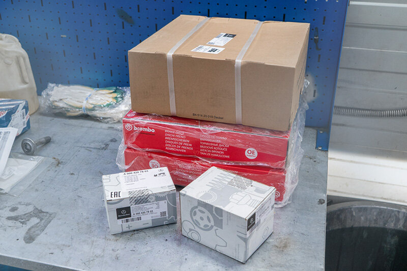 В Mercedes-Pro приехал яркий Mercedes GLC 220d 4MATIC, поскольку в автомобиле сработали датчики износа передних и задних тормозных колодок. Процедуры, включающие осмотр и необходимые замеры компонентов тормозной системы, подтвердили необходимость замены колодок и дисков вкруг.