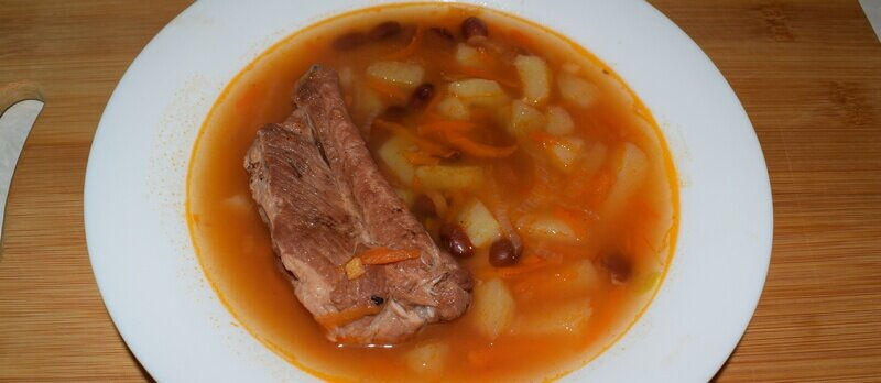 Наш суп полностью готов. Смесь невероятно сочных свиных ребрышек с буквально тающими во рту фасолью и картофеля, приправленными вкуснейшими ароматами обжаренных овощей просто незабываема. И, кстати, на следующий день этот фасолевый суп становится еще вкуснее.