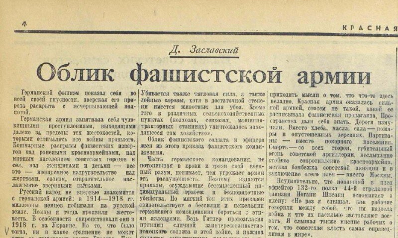Армия Гитлера воюет по-настоящему четыре месяца, потому что предыдущие годы были лишь вступлением к настоящей войне. А между тем усталость, разочарование уже прокладывают широкий путь в ряды фашистской армии. Колоссальные потери подавляют душу немца. Он видит смерть перед собой и не знает, во имя чего он должен умирать. Он видит, как рассеялись все его надежды на легкую наживу. Отпадает этот основной стимул, поддерживавший воинственность. Остается страх перед начальством и страх перед Красной армией, перед партизанами, перед суровой русской зимой.