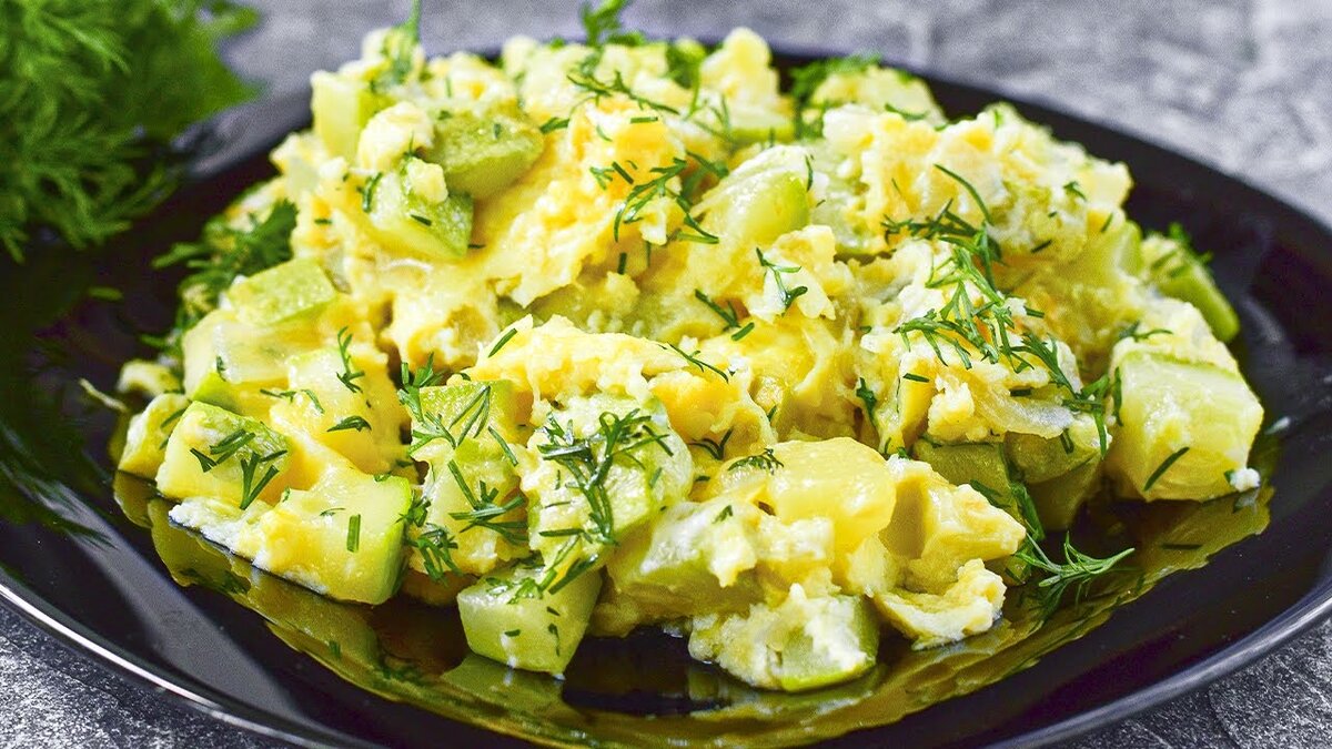 Этот рецепт я рекомендую попробовать приготовить всем, кто любит вкусно поесть, да еще и с пользой для организма! Пока еще кабачки есть на рынке, воспользуйтесь этим рецептом! Лучшее решение для обеда или ужина! Пожалуйста, напишите в комментариях под статьей, что вы предпочитаете готовить для своей семьи на ужин! Список продуктов: · 2 кабачка; · 1 луковица; · оливковое масло; · соль; · 4 яйца; · 40 гр. твердого сыра. Кабачки промываем под водой и нарезаем на кубики – размер примерно, как на этом фото. Нарезаем репчатый лук на мелкие кубики. Разогреваем сковороду с небольшим количеством растительного масла. Я рекомендую для этого блюда использовать оливковое масло. Перекладываем на сковороду кабачки и тушим их в течение 5-7 минут на среднем огне. Постоянно перемешиваем во время приготовления. Много растительного масла использовать не придется, так как во время приготовления кабачки будут выделять натуральный сок и в нем овощи можно продолжать тушить. Всыпаем к кабачкам репчатый лук и г