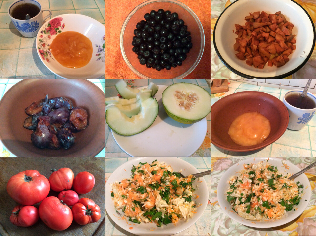 5. одна небольшая дыня с огорода. Заметил, что она начала дома немного портиться и решил скушать. Не совсем дозрела. Чувствовался слегка сладковатый, но по большей части пресный вкус.