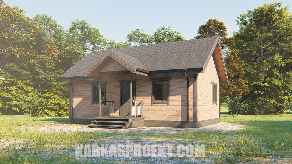 Каркасный дом 6х9 по проекту КД-42 с 2 спальнями и кухней-гостиной.