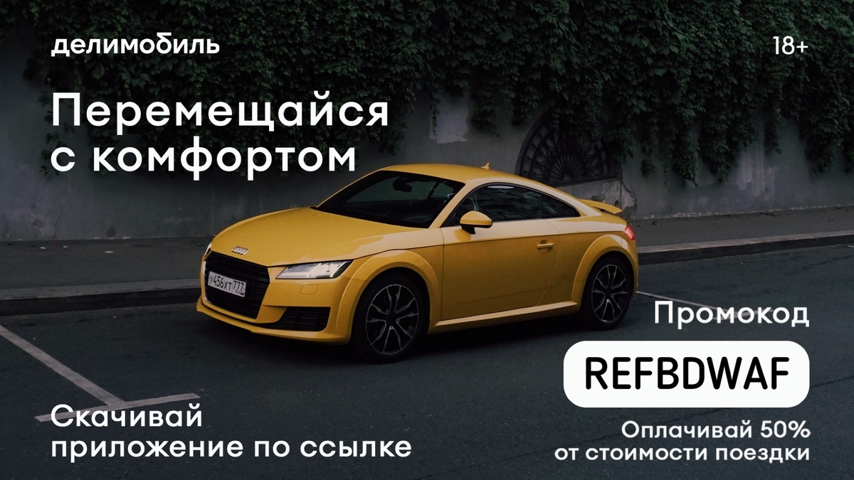 По промокоду REFBDWAF вы получите 400 бонусных рублей, которыми можно оплатить 50% стоимости поездки (только для новых пользователей) Расходы на заправку, платную парковку и мойку Делимобиль берет на себя. Сервис работает в 10 городах: Москва, Санкт-Петербург, Тула, Тольятти, Самара, Ростов-на-Дону, Нижний Новгород, Казань, Екатеринбург, Новосибирск. Скачивайте приложение <-
