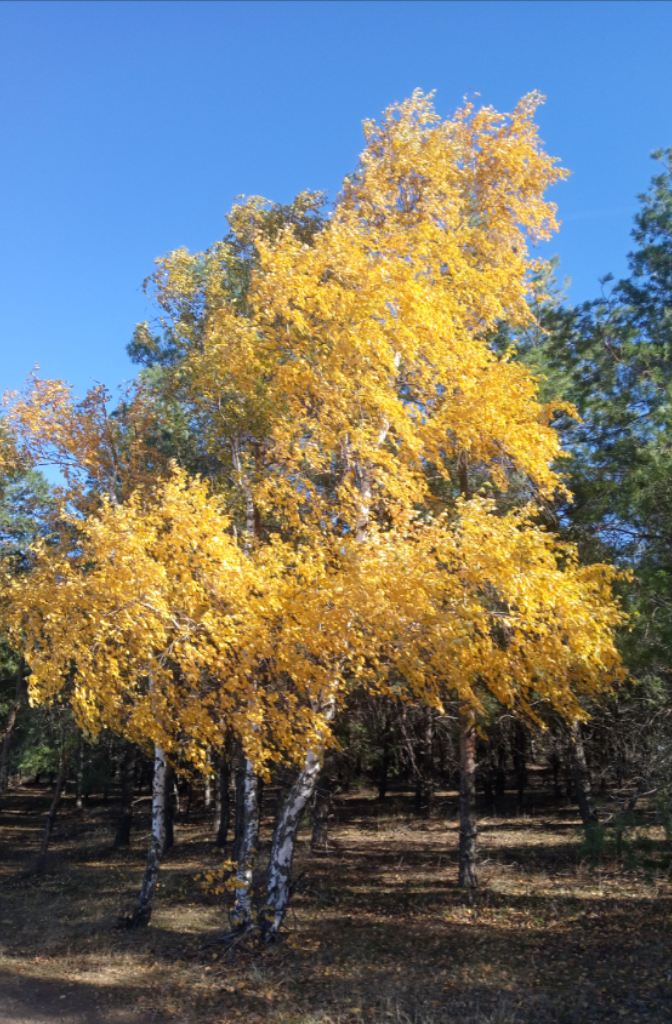 Вот большая берёза, а под ней огромнейшая грибница зелёных груздей, но правильно, конечно, чёрных.