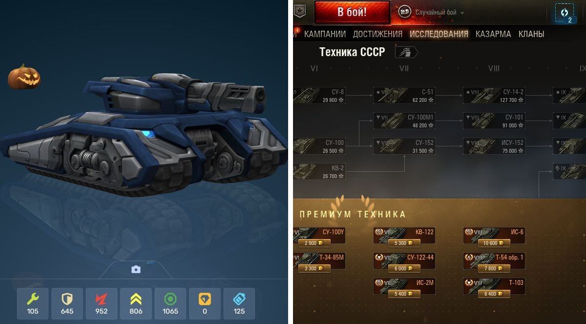 Как в Танках.Онлайн, так и в Мире Танков главная часть игры разворачивается за пределами полей сражений. Она заключается в том, чтобы прокачивать свои танки: или медленно, получая очки за победы в боях, или быстро, перечисляя разработчикам реальные деньги.