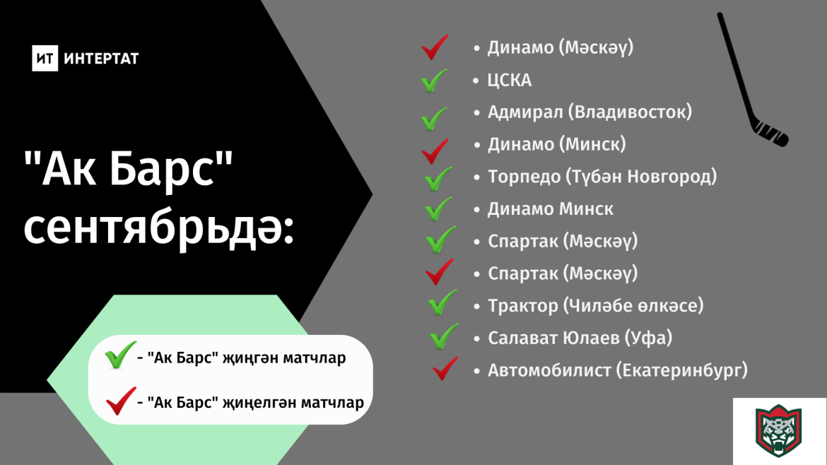 Сокланып карарлык комбинацион хоккей, матур алкалар, сезон буена бер-бер артлы яуланган җиңүләр, ә ахырда – дүртенче Гагарин кубогы... Сезон башында, мөгаен, һәрбер җанатар «Ак Барс»тан шушы нәтиҗәләрне өмет иткәндер. Дөрес, бу өметләрнең шундый масштаблы булуы юктан түгел. Җәй айларында «Ак Барс» чыннан да бик зур, җитди үзгәрешләр кичерде. Интертат бу турыда җентекләп язган иде. Сезон башланып 2 ай узгач, беренче нәтиҗәләр нинди? Интертат күзәтү ясый.