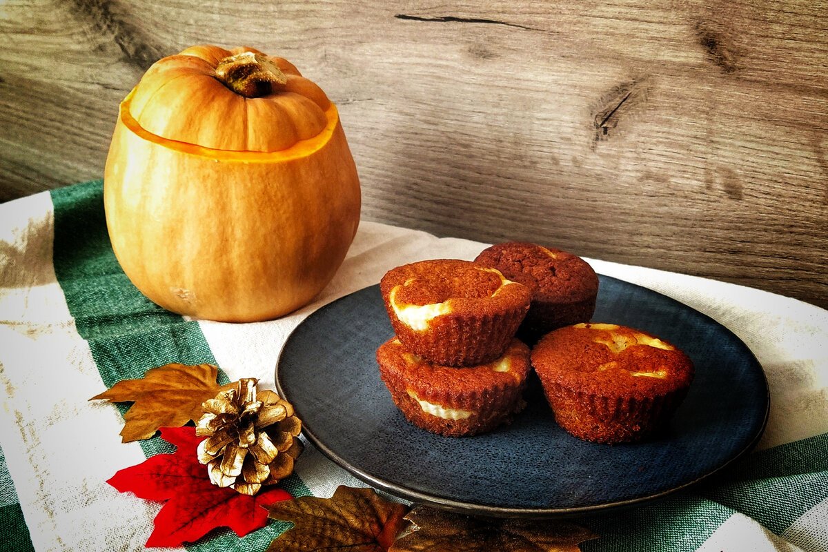 Кексы с тыквой — это идеальное осеннее лакомство! Когда за окном холодный ветер и непогода, так приятно приготовить к чаю выпечку с согревающими специями и бесподобным ароматом. Ингредиенты: 160 г размягченного сливочного масла 160 г пшеничной муки 2 ч. л. молотой корицы 1/2 ч. л. пищевой соды 1/2 ч. л. соль 150 г сахарного песка 225 г тыквенного пюре 2 яйца 200 г сыра рикотта 1 пакетик ванильного сахара Щепотка соли Приготовление: Включите духовку на 180°. Формочки для кексов смажьте растительным маслом. В миске смешайте просеянную муку, корицу, пищевую соду и соль. В большой миске с помощью миксера взбейте масло и сахарный песок до легкой, воздушной массы. Примерно 2 минуты. Добавьте тыкву, 1 яйцо и 1 яичный белок; взбейте. Добавьте сухие ингредиенты и перемешайте на низкой скорости, пока они не смешаются. Тесто будет напоминать воздушный мусс. В небольшой миске приготовьте начинку: взбейте сливочный сыр, яичный желток, ванильный сахар и соль до получения однородной массы. Разложить
