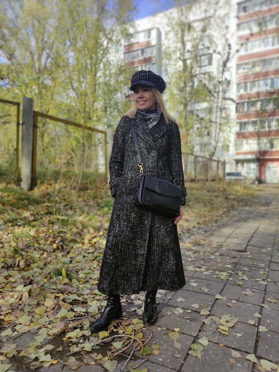Сегодня образ в стиле "Шанель". Надеваю свое любимое пальто "Massimo Dutti" с твидовой кепкой. Добавляю лаковые ботфорты и лаконичную черную сумочку через плечо.