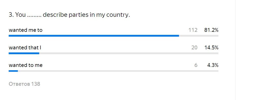 1. Я хочу, чтобы ты сделал это для меня. Я хочу, чтобы она помогла мне. Я хочу...... Как же по-английски это неординарно звучит! Многие растерялись, хотя я и предупредила. Русский вариант типа You wanted that I ....... не проходит. Как правильно? I want you to do it for me. I want her to help. 2. Большинство людей ......так ушло или пришло? в 2 ночи. Так уж хотелось, чтобы большинство пришло в 2. Это ж круто! Я пыталась донести до вас, что предложения в письме как бы связаны. И там была информация, что началась вечеринка в 10 вечера. Вероятно, пришли все примерно в это время, кроме самого закадычного друга, который тот самый "party animal" успел лишь к двум после другой вечеринки. Кстати, вот и сам тест целиком. Следующий пост - новый тест по фразовому глаголу GIVE , очень познавательный, надеюсь. Это не разбор теста, это просто к слову. До встречи на канале! Подпишитесь и поставьте "нравится", если забыли. Спасибо!