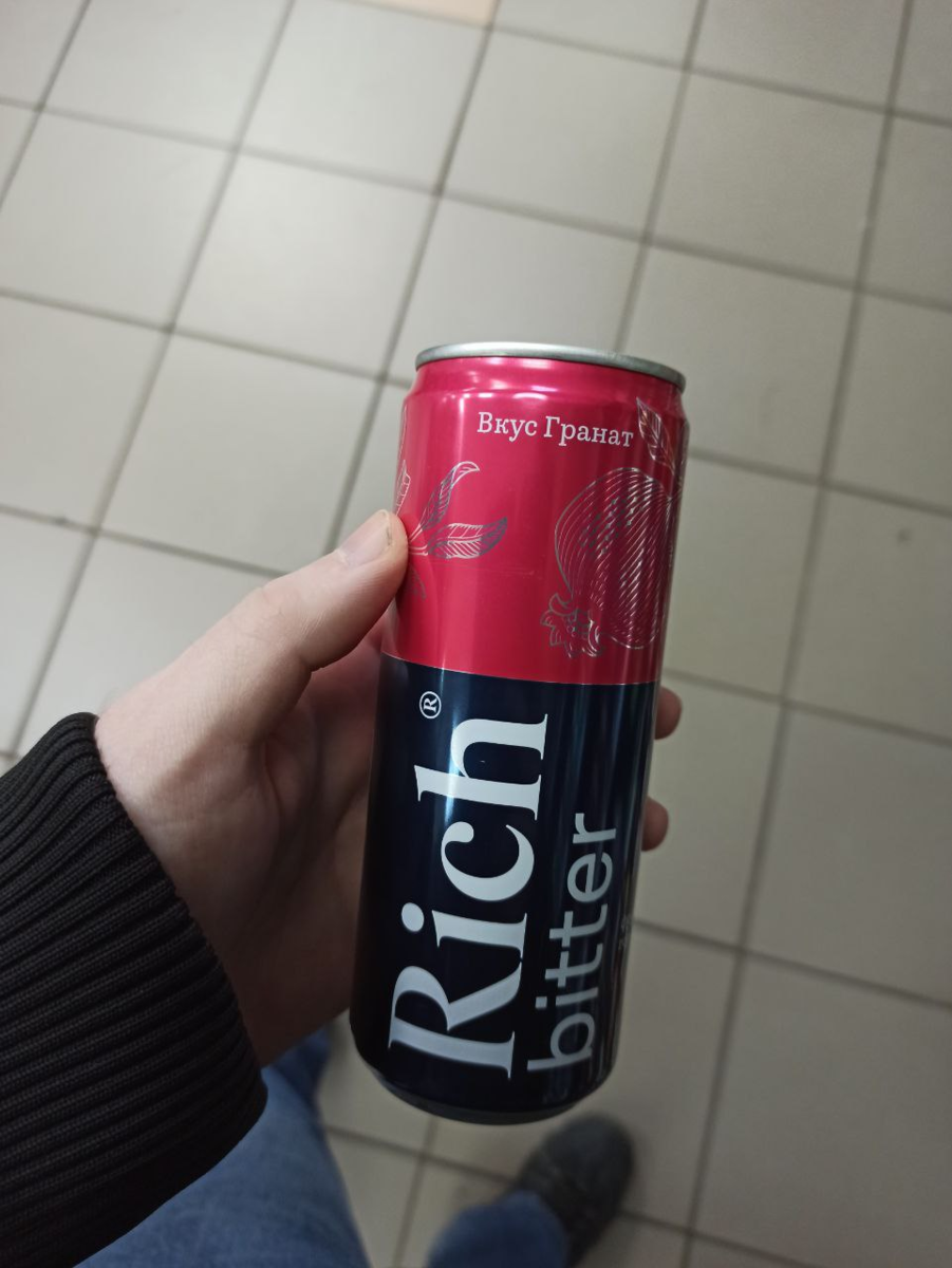 На запах напоминает свежий гранат и почему-то апероль. На вкус ничего общего с «Schweppes Дерзкий гранат». И дело тут даже не в горечи. В отличие от «Schweppes», в «Rich» добавили хинин, и по идее здесь должна чувствоваться горечь, но ее здесь нет. Во вкусе ощущается гранат, но он не на первом месте, а на первом месте чувствуются какие-то вареные овощи. Такое чувство, будто жижу от свеклы и моркови разлили в банки. Эту жижу вообще сложно допить до конца. Оригинальный «Schweppes» с гранатом испорчен .