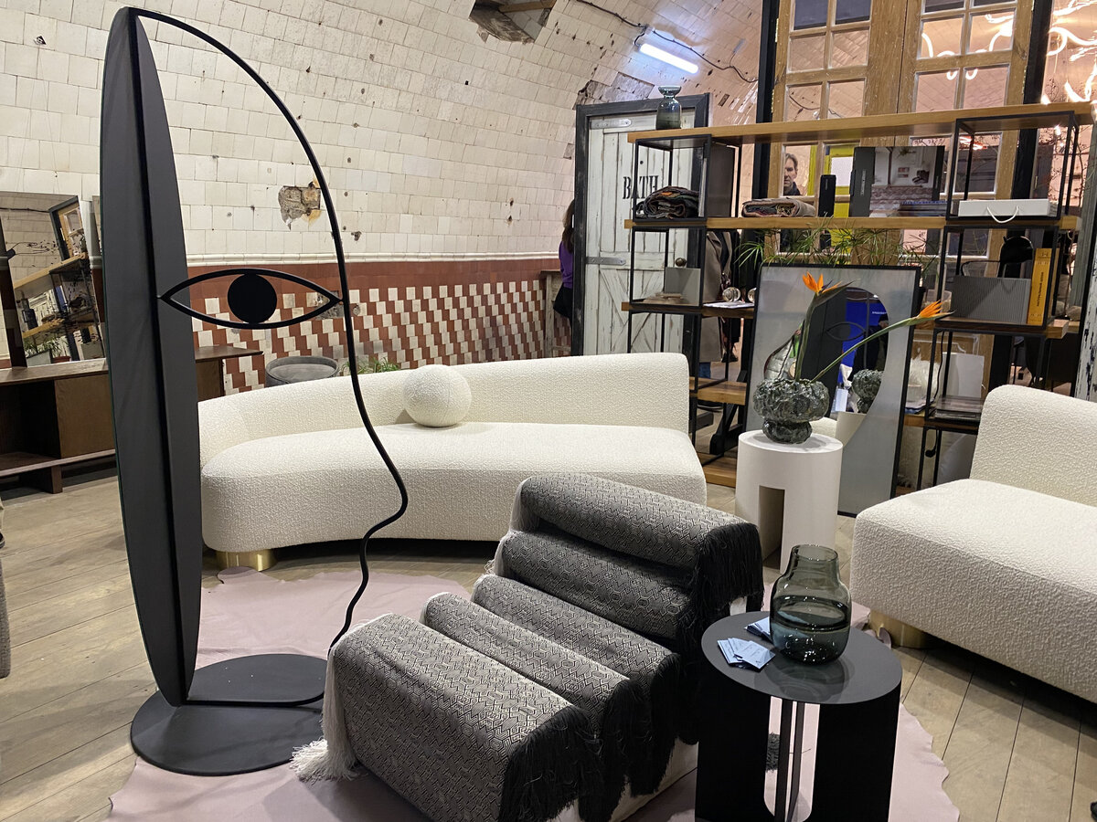 Локация выставки располагалась совсем рядом с Британской школой дизайна, поэтому я сразу после лекции побежала туда (это был первый день выставки) и не успела заранее подготовиться, прочитав про масштабы и расположение выставки. Это чуть не стало моей ошибкой, потому что первым делом я попала в зал винохранилища, где проводились все лекции и располагались в основном арт-галереи. Меня очень отвлекала архитектура самого пространства, от чего было сложно сконцентрироваться на самих предметах мебели и декора: вокруг были эти чудесные арковые своды древних залов, где реально хранили вино, колоритные стены с облупившейся плиткой и массивные балки, державшие всю конструкцию. Осмотрев все буквально за 20 минут, я недоумевала, почему так мало, и что ничего я толком не увидела интересного! Вот некоторые кадры оттуда: