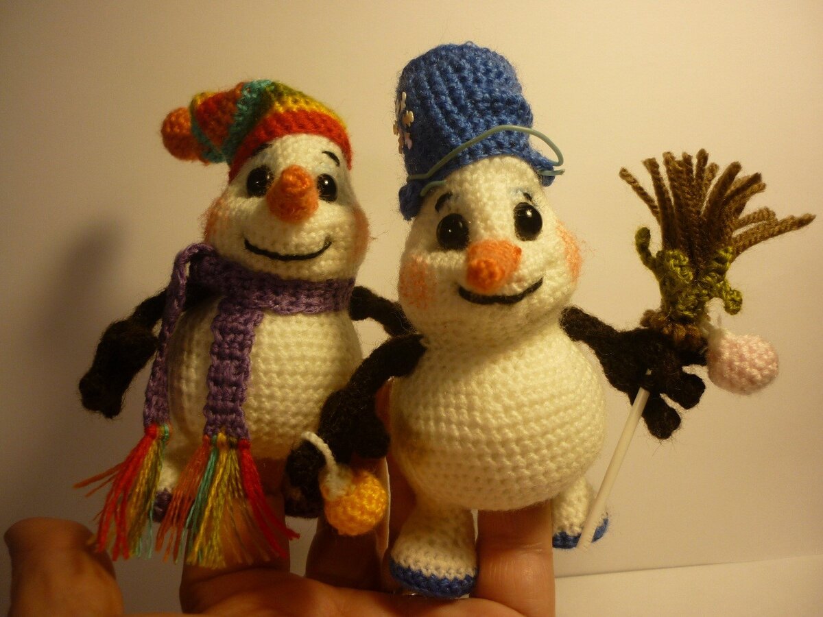 Предлагаю связать таких веселых, милых пальчиковых снеговичков.