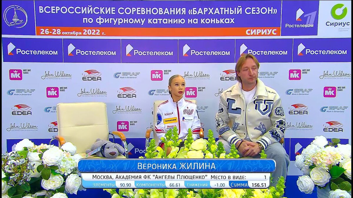 Перед тем, как приступить к новой теме, стоит вспомнить открытые прокаты: Тренер Евгений Плющенко. Начало 3 сезона: ничего нового на странном фоне Для начала посмотрим, как прогрессировала с открытых прокатов Софья Титова. Софья Титова Увы. В-первых, уже в КП исчезла даже намёки на хореографию, сплошное "сделаем кря-кря" руками при абсолютно неподвижном теле, особенно его нижней половине. Насколько это беспомощно выглядит? Ну, вспомните программы Александры Трусовой до сезона 2021/22 - ведь ее часто ругали за "деревянную" хореографию - и представьте, что даже та, абсолютно мальчуковая и некомпонентная Саша выглядит Аней Щербаковой или Алиной Загитовой на фоне этого хорео-уныния. Ну, и тем, кто любит покричать про "читерство" спортсменок ТШТ, советую посмотреть на 3А Софьи, где начало оборотов пошло до толчка и отрыва ото льда. В остальном - извините, но это невозможно смотреть, это регресс, как он есть, даже по сравнению с и так не блистающим прошлым сезоном. В ПП все чуть получше, ви