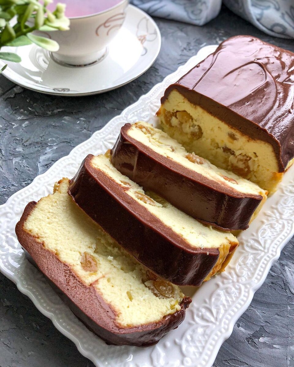 Львовский сырник – вот, что действительно очень-очень вкусно. Обязательно порадуйте своих друзей и близких данным десертом. Уверенна, что он придется им по душе, так как готовится легко и просто из привычных ингредиентов, а толстый слой шоколадной глазури придает особую ему изюминку. Обязательно попробуйте! Для этого десерта нам понадобятся: 500 грамм жирного творога, 3 яйца, 120-150 грамм сахара, щепотка соли, щепотка ванильного сахара, цедра 1 лимона, 1 столовую ложку кукурузного крахмала и горсть изюма. Для глазури. Возьмите 3 столовой ложки сметаны, 1 столовую ложку сливочного масла, 2 столовые ложки сахара, 2 столовые ложки какао. Творог нужно пробить блендром до пастообразной консистенции, тщательно смешать с яйцами, солью, ванильным сахаром, цедрой лимона и крахмалом. Я также делаю это в блендере. Добавить изюм. Затем, нужно смазать форму, выложить творожную массу и выпекать при температуре 180 градусов около 45-50 минут. Смешать все ингредиенты для глазури, тщательно прогреть