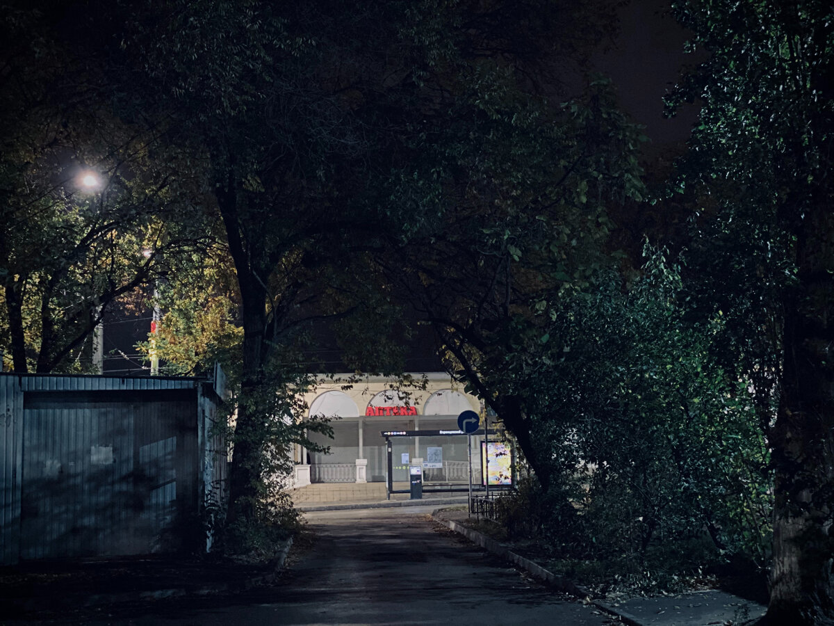Пятёрочка, магнит-у-дома, аптеки (две), собаки (две). Заправка. Город незнакомый и южных звёзд огромных свет.