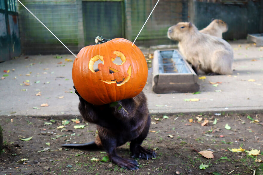 Фото животных с тыквой на голове из одного зоопарка (14 фото)