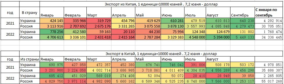 1. Торговля России с Китаем продолжает пухнуть. Если брать данные за первые три квартала, то год к году рост нашего импорта из Китая составляет более 10%, а рост нашего экспорта в Китай и вовсе превышает 50%. Соотвествующую табличку приводит блогер Genby (ссылка).