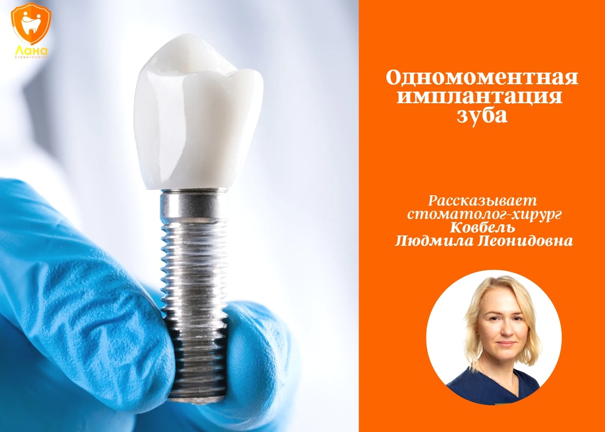 Рассказывает хирург-имплантолог Ковбель Людмила Леонидовна. Одномоментная имплантация — это хирургическая операция "два в одном". Она сочетает удаление зуба и установку имплантата, который внедряют в свежую лунку. Нагрузка искусственного корня временной коронкой выполняется после его приживления или сразу. За один визит к врачу пациент получает новый зуб вместо утерянного. С помощью методики удается быстро восстановить жевательную функцию и эстетику улыбки, сократить сроки лечения. Вопрос о применении методики решает врач на основании результатов диагностики. Одномоментная имплантация не применяется в следующих случаях: -экстренное удаление зуба из-за травмы или острого воспалительного процесса; -повреждение костной ткани при сложном удалении — важно сохранить целостность лунки; -острые воспалительные процессы на корне зуба — установка импланта не в стерильные условия грозит осложнениями; -общие противопоказания к установке имплантатов. Как осуществляется установка имплантатов? Одномом