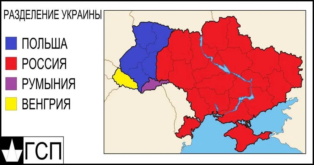 Доброе всем утро. Бороздя просторы нашего безграничного Яндекса и буржуйских говно поисковиков натыкаюсь на одни и те же карты. Давайте немного порассуждаем на эту тему ведь на самом деле это приближается и кто знает может нас подводят к этому плавно уже давно. " Красная зона " как видим это отношение территорий к РФ. Во всех подобных картах обрисовано именно так. Хотя пару карт встречал где все таки оставалась маленькая Украина состоящая из нескольких областей. Ну давайте так разбираем данную карту и я думаю ни у кого нет сомнений что красная линия проведена там где надо. Давайте разберем дальнейшие переделы. " Жёлтая зона " отношение территории Венгрии. Данным цветом обозначена Закарпатская область в ней проживает в пределах 200 тыс. человек Венгерской национальности. Жители данной области давно хотели провести референдум и войти в состав Венгрии. Закарпатская область она не меняла свои традиции на протяжении многих лет и родственных связей не меньше чем у "Красной зоны" с РФ. " Сир
