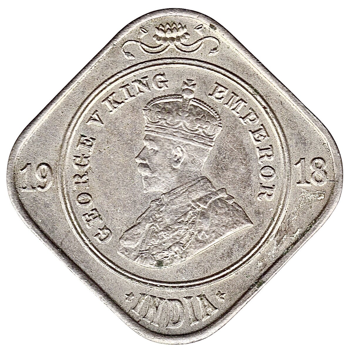 На реверсе – дата выпуска 1918 и номинал на 5 языках : урду, телугу, деванагари, бенгали и на английским.