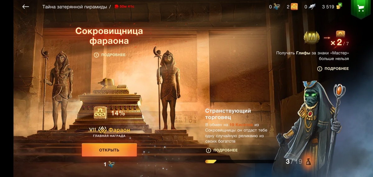 Решил испытать удачу в последние минуты игрового события "Сокровищница фараона" и не прогадал. До этого были открыты контейнеры на двух аккаунтах, одному более трёх лет, второй совсем новый. Но удача была не на нашей стороне, поэтому все открытия не принесли Фараона в коллекцию.