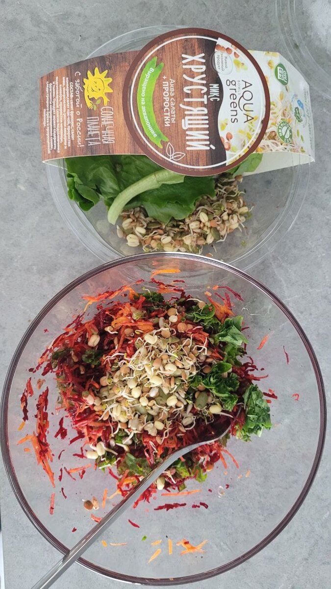 Любовь же сказала, что наелась просто салатом с пророщенными зернами. Такой завтрак допускается по системе. Но все же, в завтраке не хватило углеводов.