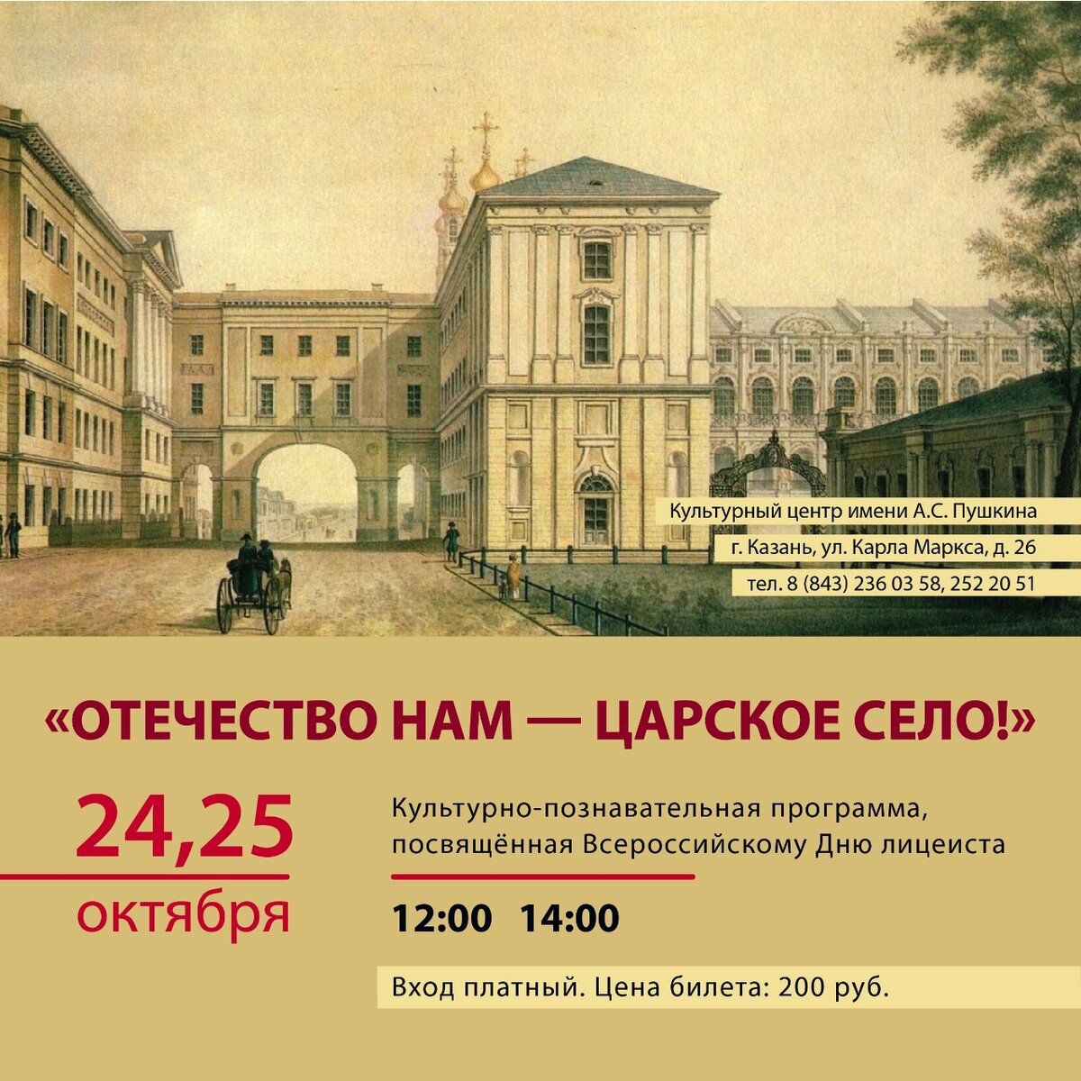 Культурный центр имени А.С. Пушкина приглашает на культурно-познавательную программу «Отечество нам — Царское Село!»,