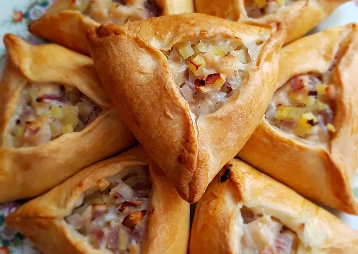 Курник - русский традиционный пирог, в прошлые столетия особенно широко известный на юге Руси у донского и кубанского казачества, а в уральских регионах считался доброй приметой на свадьбу: пекли два больших пирога и подносили молодым в расшитом рушнике, разламывали над ними - тем самым привлекая достаток и богатство к новой семье. В тёплой части страны принято печь большие куполообразные пироги, а вот в северной и сибирской - это маленькие, чаще треугольной формы пирожки-курники. Я проживаю на границе Архангельской области и Республики Коми, поэтому и рецепт у меня именно во втором исполнении. Ингредиенты для теста: - одна пачка масла (маргарина) 250 грамм комнатной температуры - четыре стакана муки - одна чайная ложка сухих дрожжей - половина чайной ложки соли - одна чайная ложка сахара - один стакан теплой воды - одна стопка растительного масла Ингредиенты для начинки: - три картофелины - одна крупная луковица - триста грамм куриного фарша или филе. Приступаем к приготовлению: 1