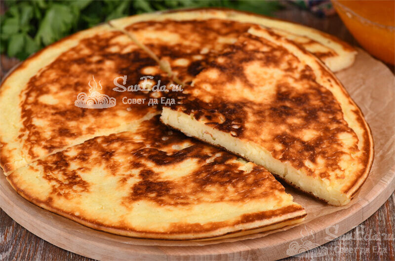 Лепешки совершенно разные по вкусу. Одна лепешка нежная творожная, а другая хрустящая мясная. Они сытные, очень вкусные и прекрасно подходят для завтрака или перекуса. Способ приготовления очень легкий, просто все перемешиваю, выкладываю на сковороду и обжариваю с 2 сторон. Мясная лепешка. В миску разбиваем яйца (3 шт.), добавляем мелко натертый сыр (50 г), молоко (125 мл) и готовый обжаренный мясной фарш (150 г). Фарш можно заменить на небольшие кусочки готового мяса, рыбы или колбасы. Солим и хорошо перемешиваем. В эту смесь нарезаем ножницами лаваш (1 шт., 115 г). Должна получиться густая масса (по необходимости еще добавляем лаваш). В сковороде разогреваем растительное масло (1 ст. л.). Выкладываем подготовленную массу и равномерно распределяем. Готовим на слабом огне под крышкой около 10 минут. Как только низ хорошо зарумянится, лепешку переворачиваем на другую сторону. Накрываем сковороду большой тарелкой, переворачиваем и с тарелки лепешку смещаем снова на сковороду. Готовим еще