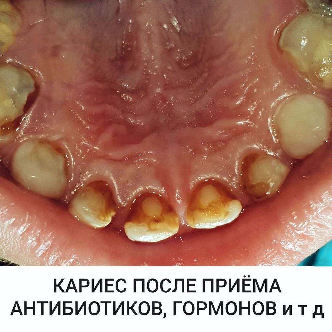 КАРИЕС СТРЕМИТЕЛЬНО РАЗВИВАЕТСЯ ПОСЛЕ ПРИЁМА АНТИБИОТИКОВ, ИНГАЛЯЦИОННЫХ ГОРМОНОВ И ДАЖЕ ЖАРОПОНИЖАЮЩИХ.
