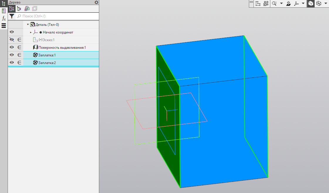 В этой статье узнаем как менять цвет и другие свойства для тел, полученных сшивкой поверхностей. Снова используем как основу модель из прошлой статьи. Сшиваем с образованием тела. В дереве переключаемся на структурное представление. В дереве раскрываем список «Тела». Кликаем правой кнопкой на теле «Поверхность...». В открывшемся меню выбираем «Свойства тела». Наименование тело наследует от первого объекта в операции сшивки, поэтому тело называется поверхностью — это нормально, не обращайте внимания. В открывшейся панели параметров можем поменять цвет изделия, выберем для наглядности красный. Если вас смущает название тела «Поверхность...», то его тоже можно сменить. Получившийся результат можно увидеть на картинке. Цвет и название изменились. Самостоятельно поэкспериментируйте с другими свойствами.