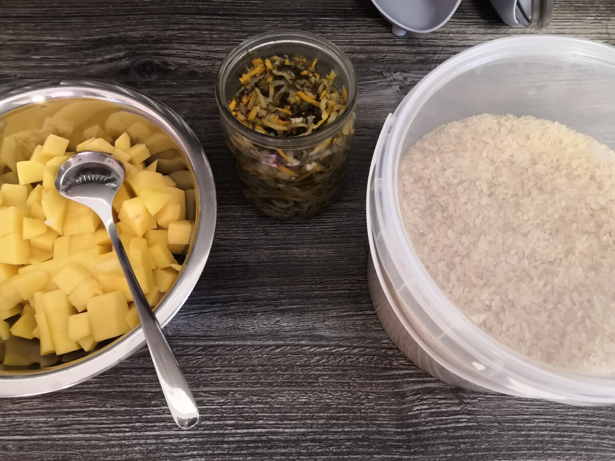На первое в этот раз готовила рассольник. Все, что потребовалось сделать - начистить немного картошки. Открыла баночку своей заправки и суп готов.