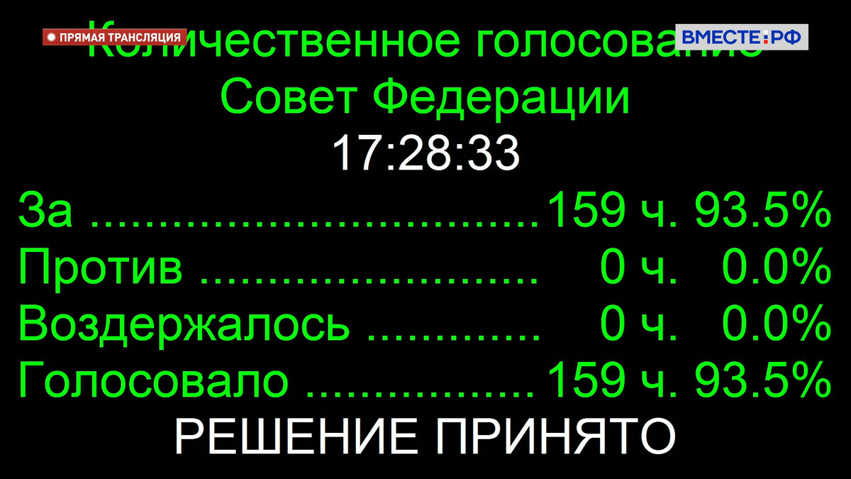Совет Федерации утвердил указ президента о военном положении на новых территориях