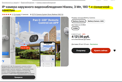 Вся подборка по видеонаблюдению. Как заявлено у продавца, камера идет с солнечной панелью, но по факту оказалось, что солнечной панели нет. Тут, конечно, я лопухнулся, но ради интереса открыл спор. Я понимаю, что это возможно ошибка перевода, но проверить информацию о собственном товаре лишний раз не возбраняется, ибо это вводит покупателя в недоразумение, а если коротко, то своего рода обман. ВК (далее видеокамера) имеет следующее основные заявленные характеристики Камера 3 Мп, 180 °. Формат сжатия видео H.264 Battery Capacity 9600 mAh потребляемая мощность 5W. сетевой интерфейс Wi-Fi/802.11/b/g Итак минусы: 1. Формат сжатия видео H.264. Сейчас уже большинство ВК идут H.265. 2. Цена завышена в 2 раза. 3. Управление поворотом (PTZ управление) идет только по горизонтали, по вертикали настраивай сам со стремянки. 4. Продавец даже не приложил блок питания, комплект состоит из ВК, кабеля USB и комплекта дюбель-гвоздей. 5. По факту, либо в крышке заглушке нужно делать отверстие п