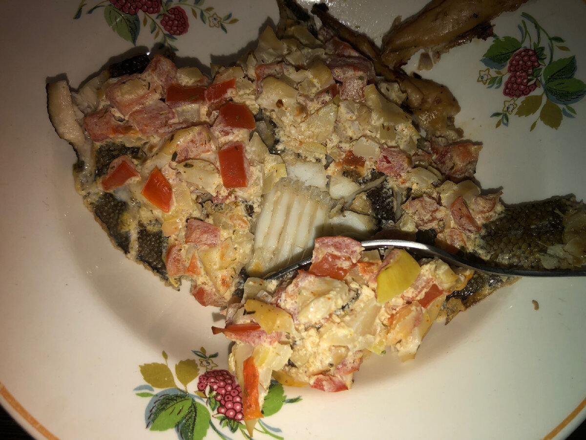 Пока готовила камбалу, изобрела салат) Так тоже бывает! Рыбка под аппетитной шапкой👍