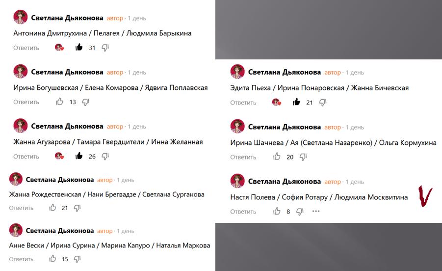 Здравствуйте! Пора нам подвести итоги первого тура, сказать добрые слова любимым солисткам и перейти на следующий. Моя новая голосовалка оказалась намного честнее и логичнее. Так и будем продолжать. И сегодня разговор пойдёт о девушках, которые набрали меньше голосов, чем другие. Настя Полева Елена Дорожкина: Самобытный, сильный, удивительный голос Насти Полевой стал первым женским вокалом, зазвучавшим на рок-сцене эпохи 80-х. Настя - яркая представительница так называемого Свердловского рок-клуба, подарившего стране "Наутилус", "Апрельский марш", "Чайф", "Агату Кристи". В 1986 году Полева приняла музыкальное рок-крещение, будучи принятой в его ряды. Вскоре певица собрала коллектив, получивший название "Настя" по имени основательницы и вокалистки. Певица прошла большой путь: от любительского вокала до собственного коллектива и полноценного профессионального авторства своих песен. В саундтреке к фильму "Брат-2" использована композиция Насти "Летучий фрегат". Сан Саныч: Много был